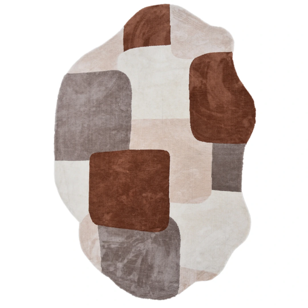Terra is a bold, free-form rug that breaks symmetry with earthy tones of rust, beige, ivory, and taupe in soft, abstract blocks. Its organic, asymmetrical shape adds a sculptural touch to modern living spaces, reading nooks, or creative studios. Made from 100% pure New Zealand wool, it offers a dense 15–20mm pile for luxurious comfort. The anti-skid backing ensures stability, while eco-friendly and pet-safe dyes make it both stylish and sustainable. Terra is a statement piece that brings warmth, artistry, and natural elegance into any contemporary interior.